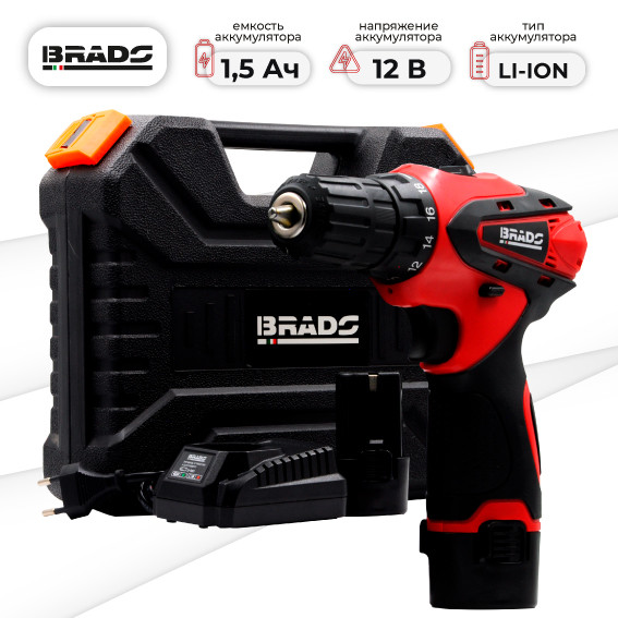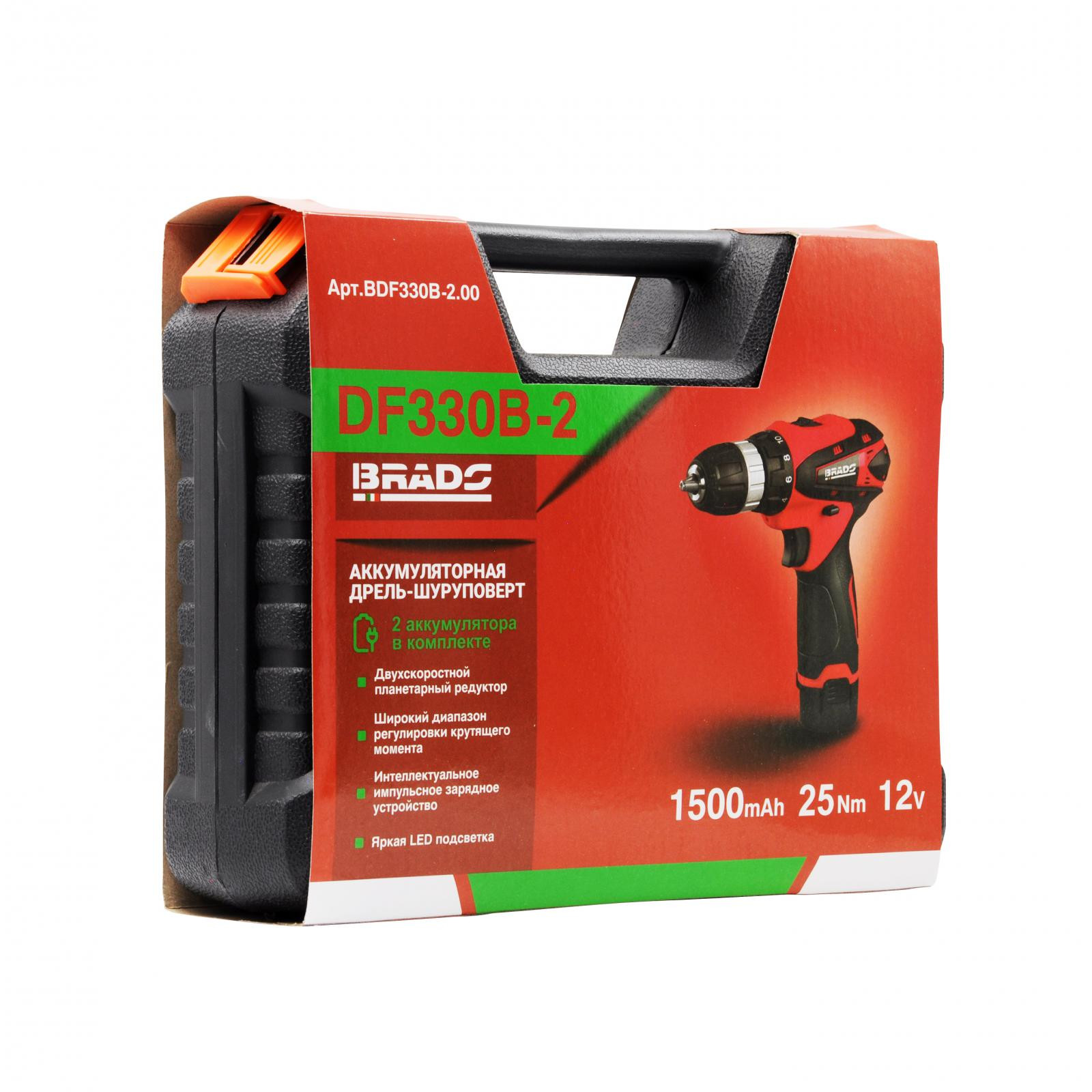 Дрель-шуруповерт аккумуляторный BRADO DF330B-2 (2 ск, Li-ion 12В, 2 акк, 1,5 А/ч, кейс)