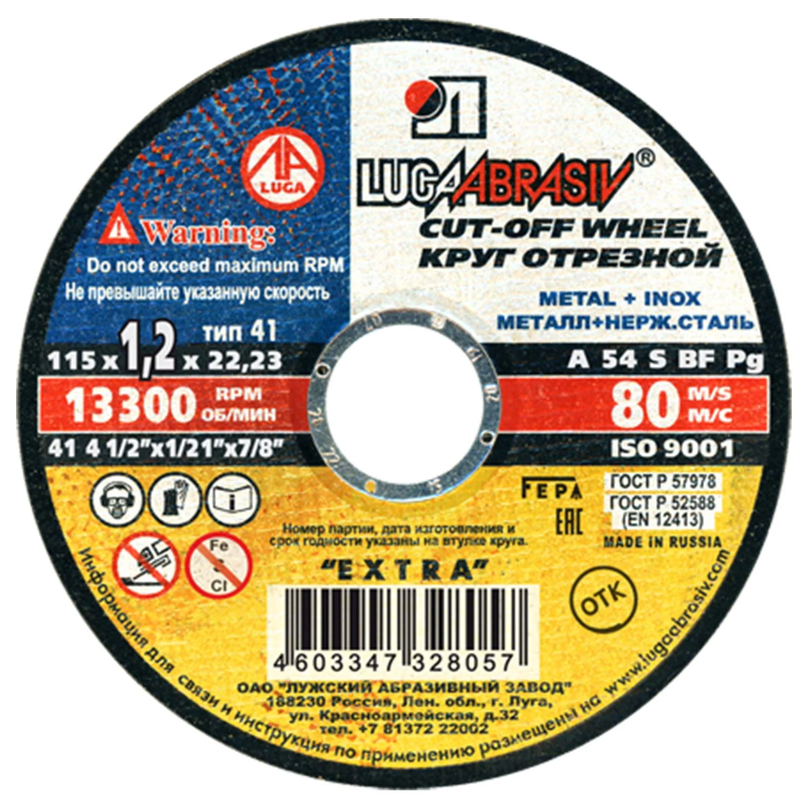 Круг отрезной 115х1.2х22.2 LUGAABRASIV для металла и нержавеющей стали