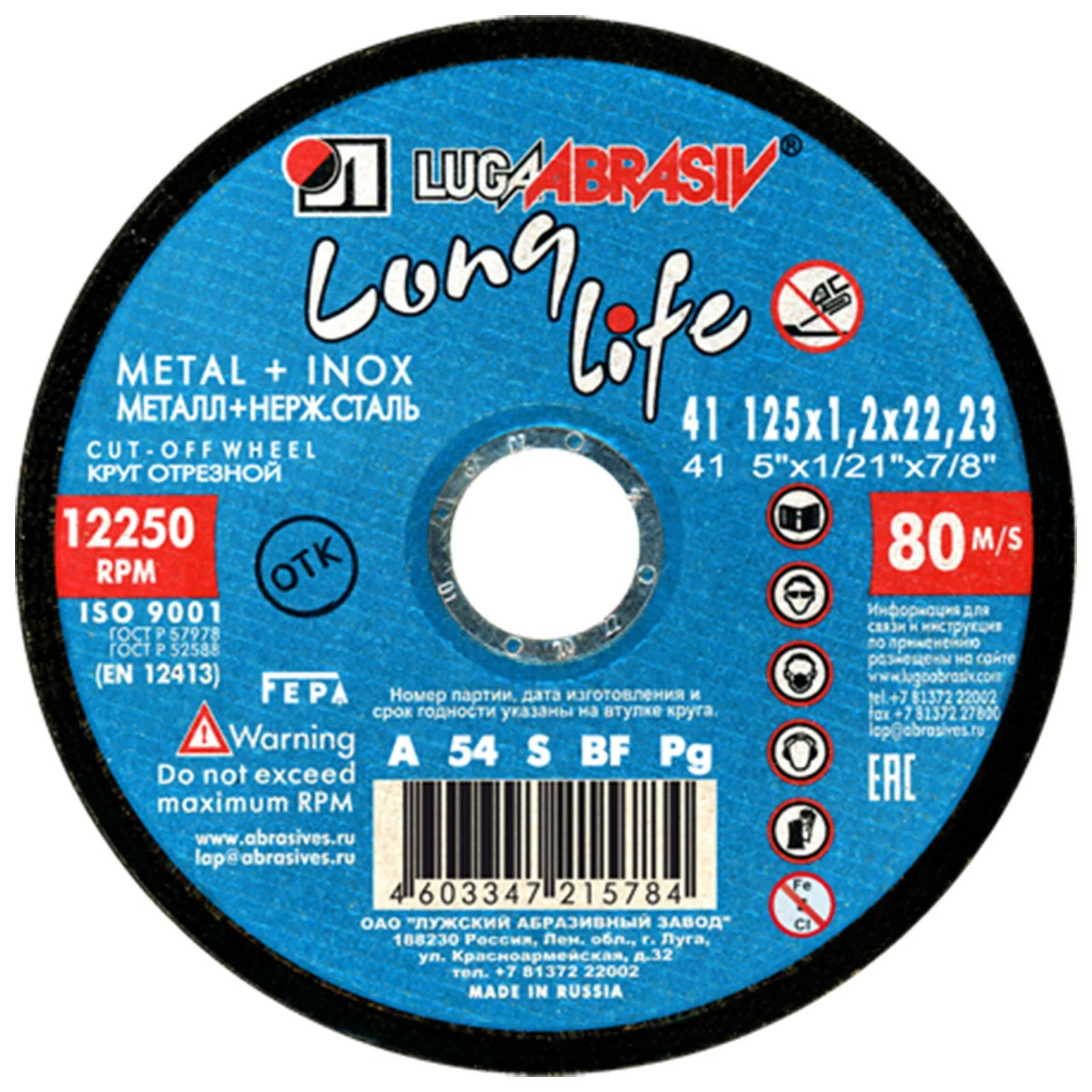 Круг отрезной 125х1.2х22.2 LUGAABRASIV для металла и нержавеющей стали LongLife