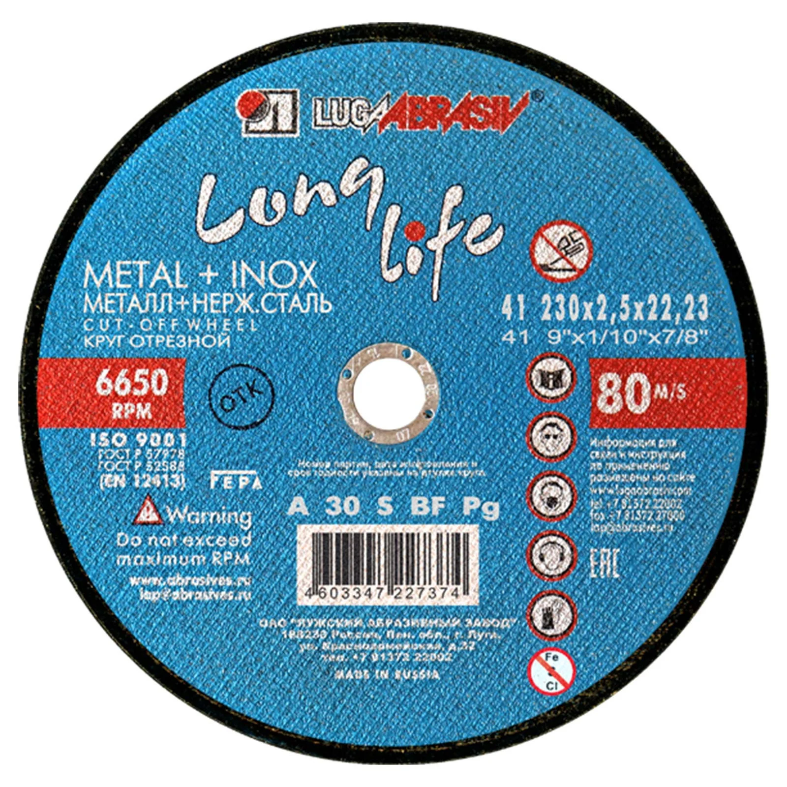 Круг отрезной 230х2.5х22.2 LUGAABRASIV для металла и нержавеющей стали LongLife