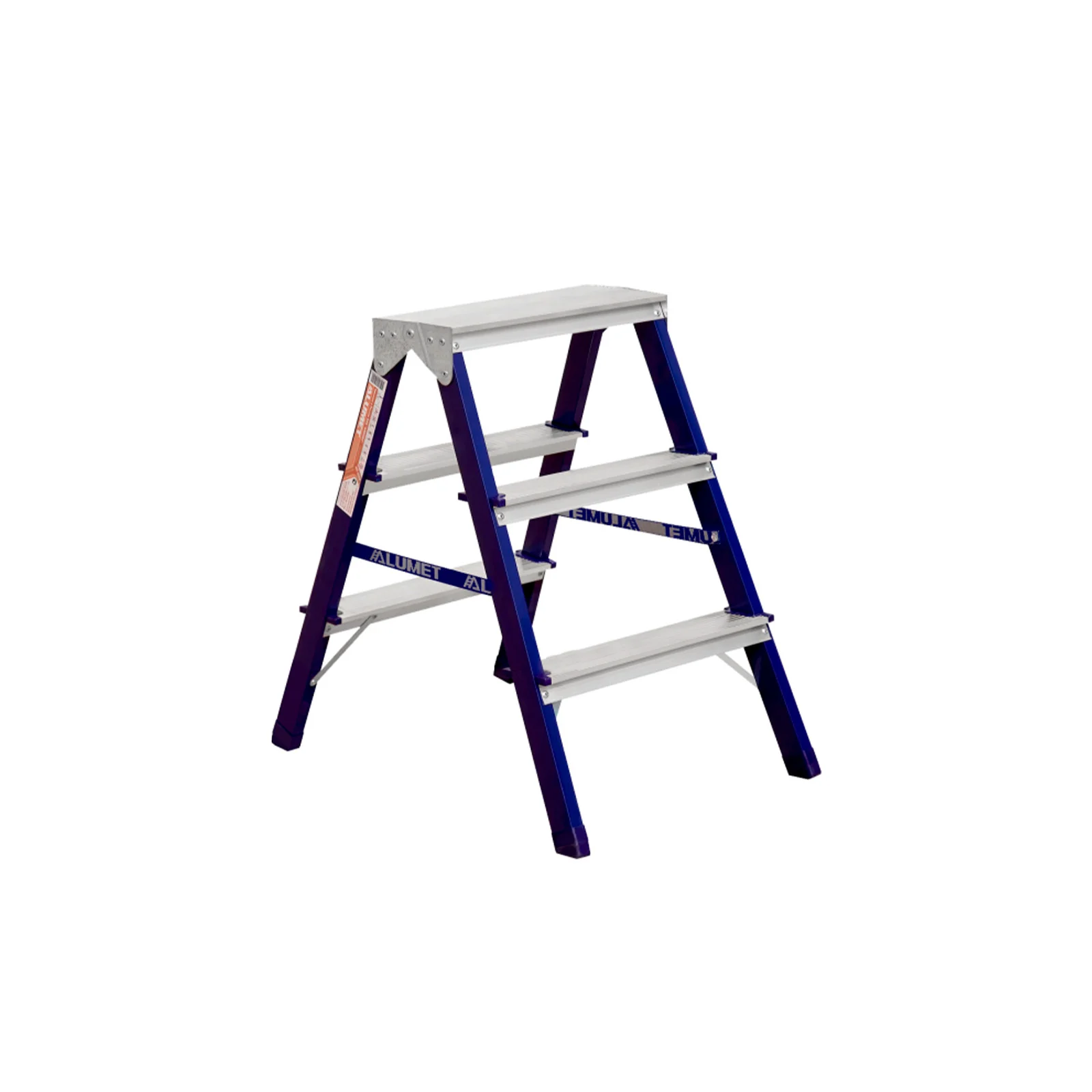 Лестница-стремянка двусторонняя Алюмет MD8203 (40*20, 3-х ступ., сталь, алюм. ступени)