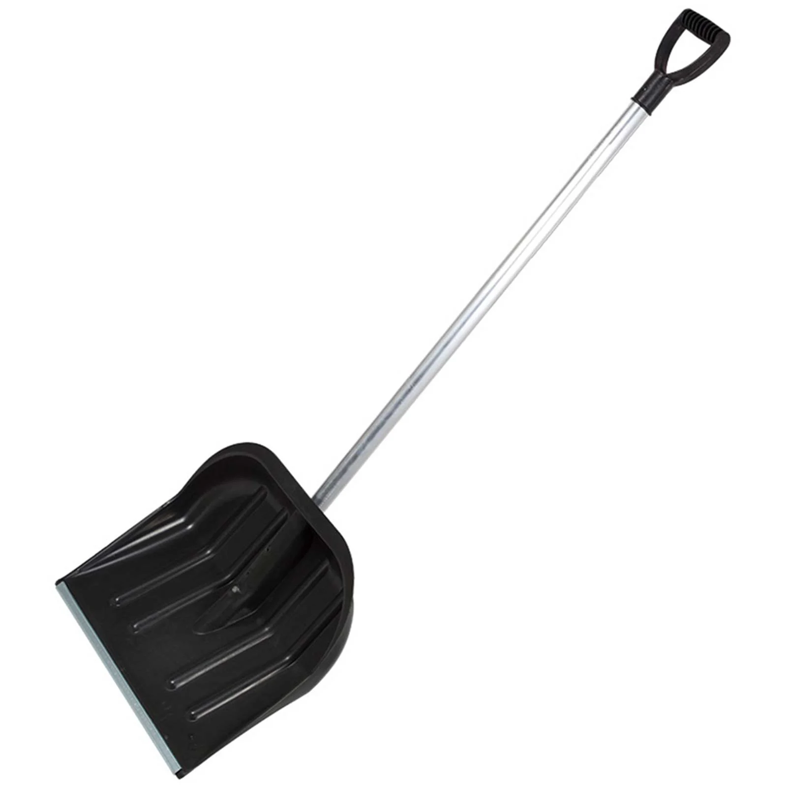 Лопата с алюминиевой планкой и алюминиевым черенком, размер полотна 430х400 мм. Предназначена для расчистки различных территорий и дорожек от снега.