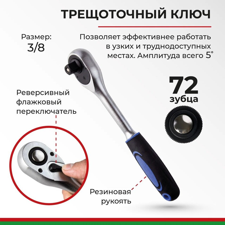 прочные металлические замки и эргономичный ударопрочный кейс чемодан делают набор головок с трещоткой эффективным и мобильным
