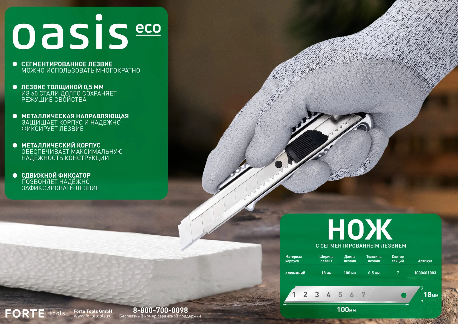 Нож с сегментированным лезвием Oasis Eco (18х100х0,5мм, быстрая замена, алюминиевый корпус)