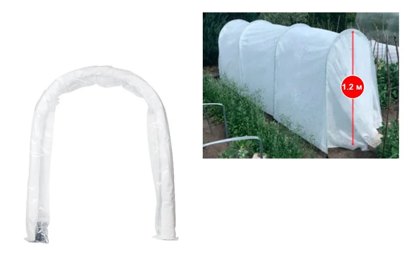 — В комплекте: металлические дуги в ПВХ оболочке, спанбонда 60 гр/м2., зажимы, наконечники.