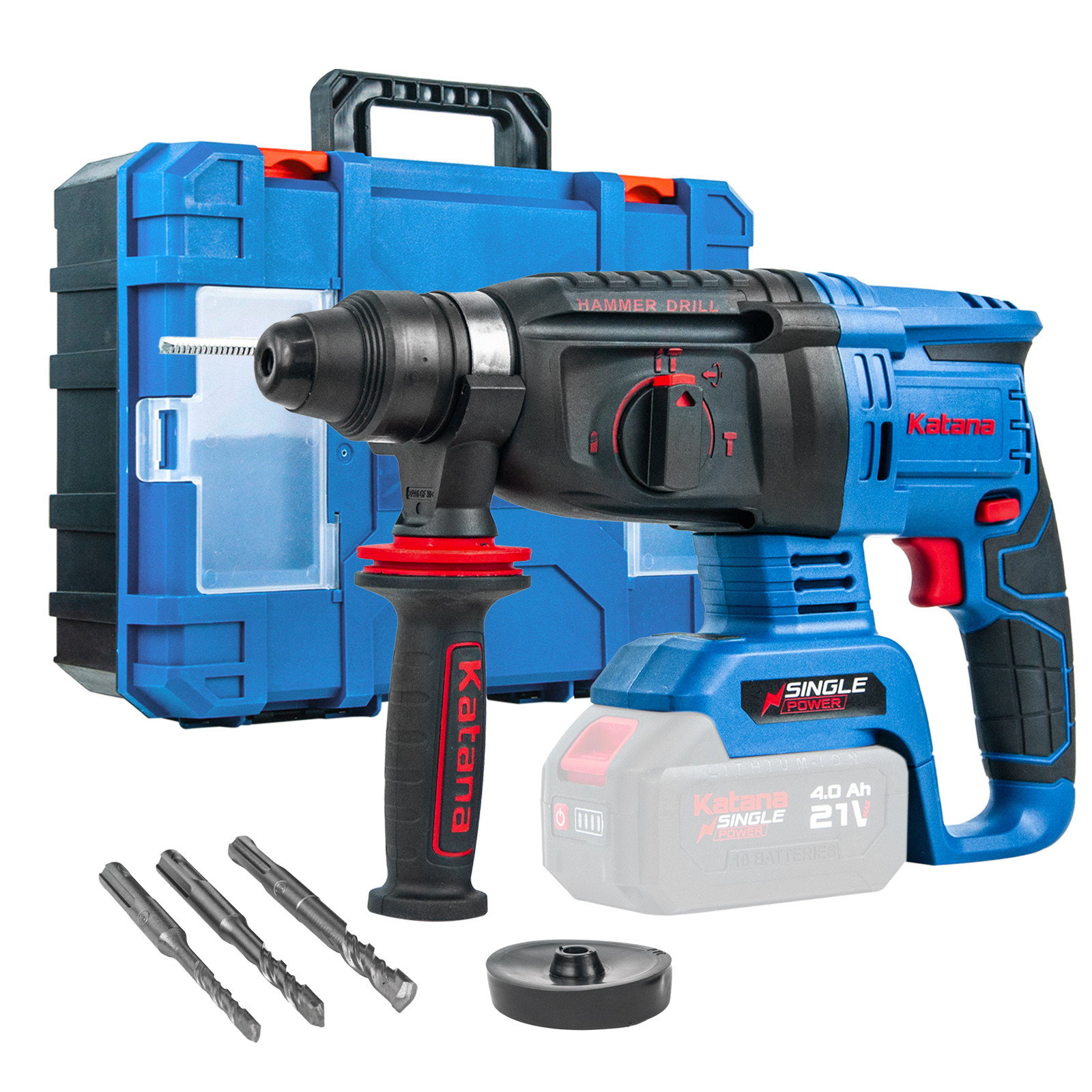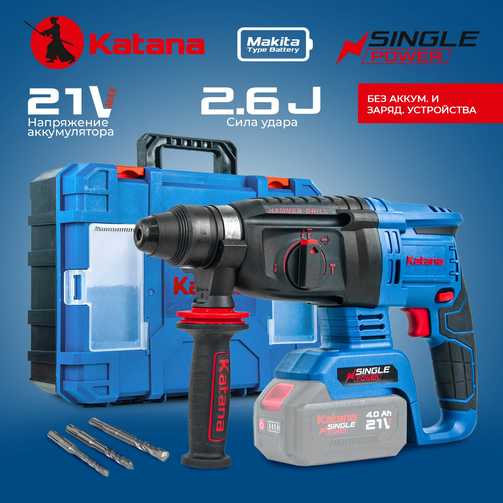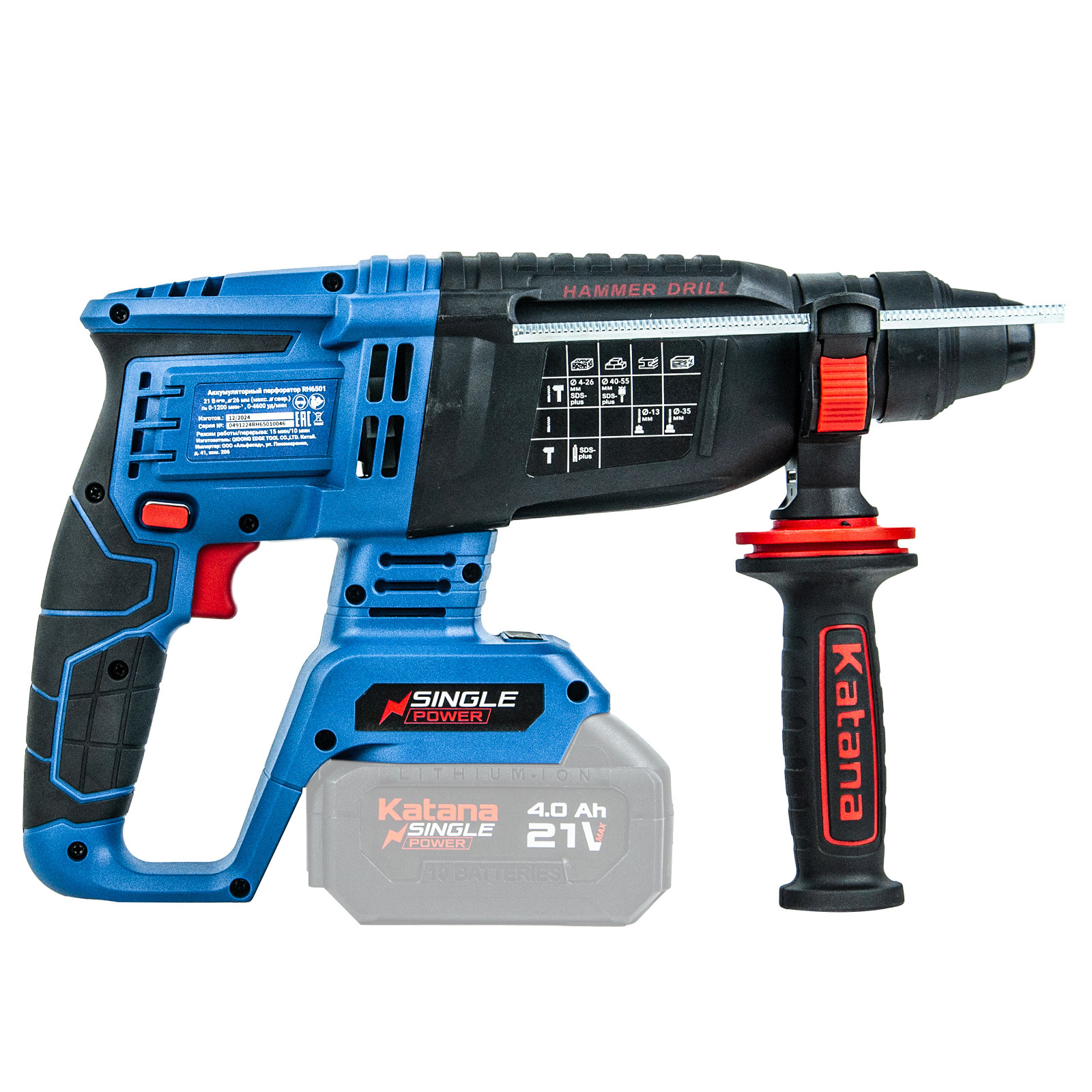 Перфоратор аккумуляторный KATANA RH6500 поставляется без аккумулятора и зарядного устройства. Перфоратор является представителем семейства Single Power, а значит совместим со всеми аккумуляторами платформы. Согласно Вашим задачам и потребностям аккумуляторы нужной ёмкости серии Single Power можно приобрести отдельно.