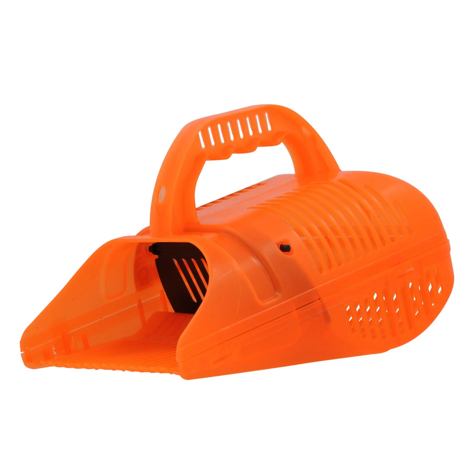 Удобная ручка позволяет легко и быстро собирать ягоды, а заслонка препятствует попаданию крупного мусора и выпадению ягод из него.
