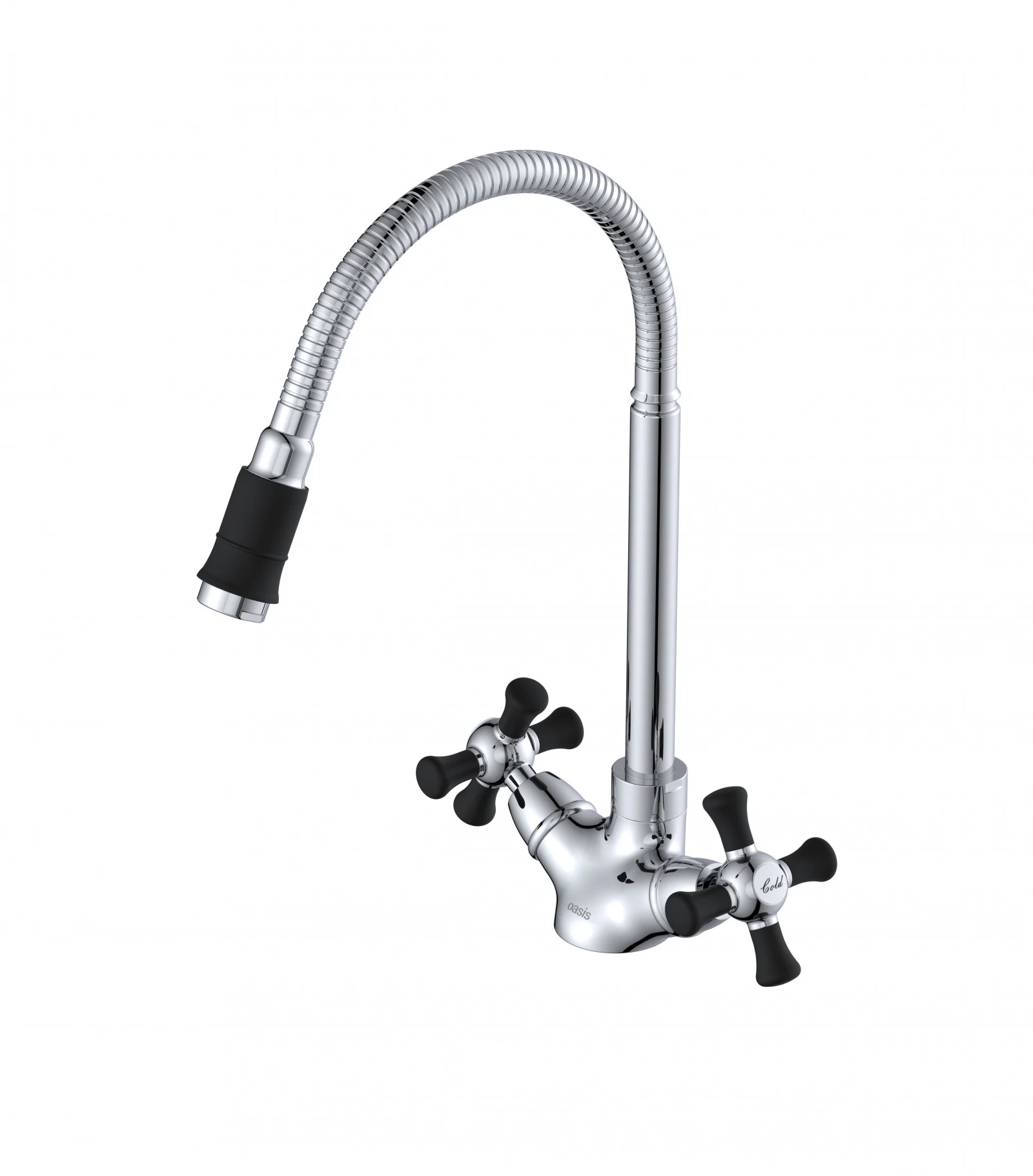 Двухвентильный смеситель для кухни с корпусом из латуни и гибким изливом черного цвета, крепление на гайке, присоединительный размер М28х1,5