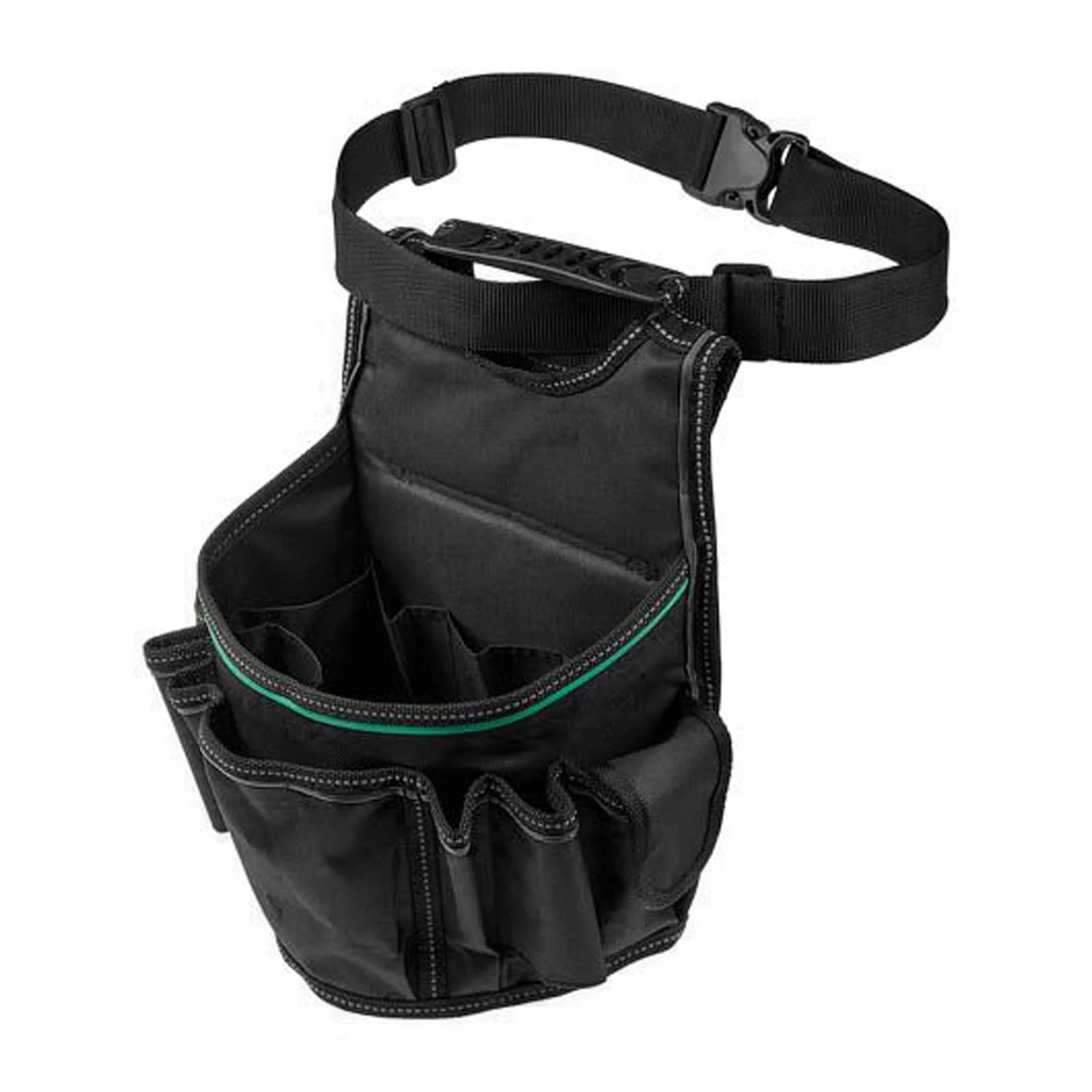 Сумка для хранения и переноски инструмента. 17 карманов: 7 внутренних и 9 внешних, 1 задний сетчатый карман. Изготовлена из прочного и износоустойчивого полиэстера . Сумка оснащена удобной ручкой для переноски, а также удобным поясом с регулировкой, который позволяет крепить сумку как на пояс, так и использовать как ремень на плечо. Материал Оксфорд 650ПВХ. Прострочка из светоотражающей ленты.