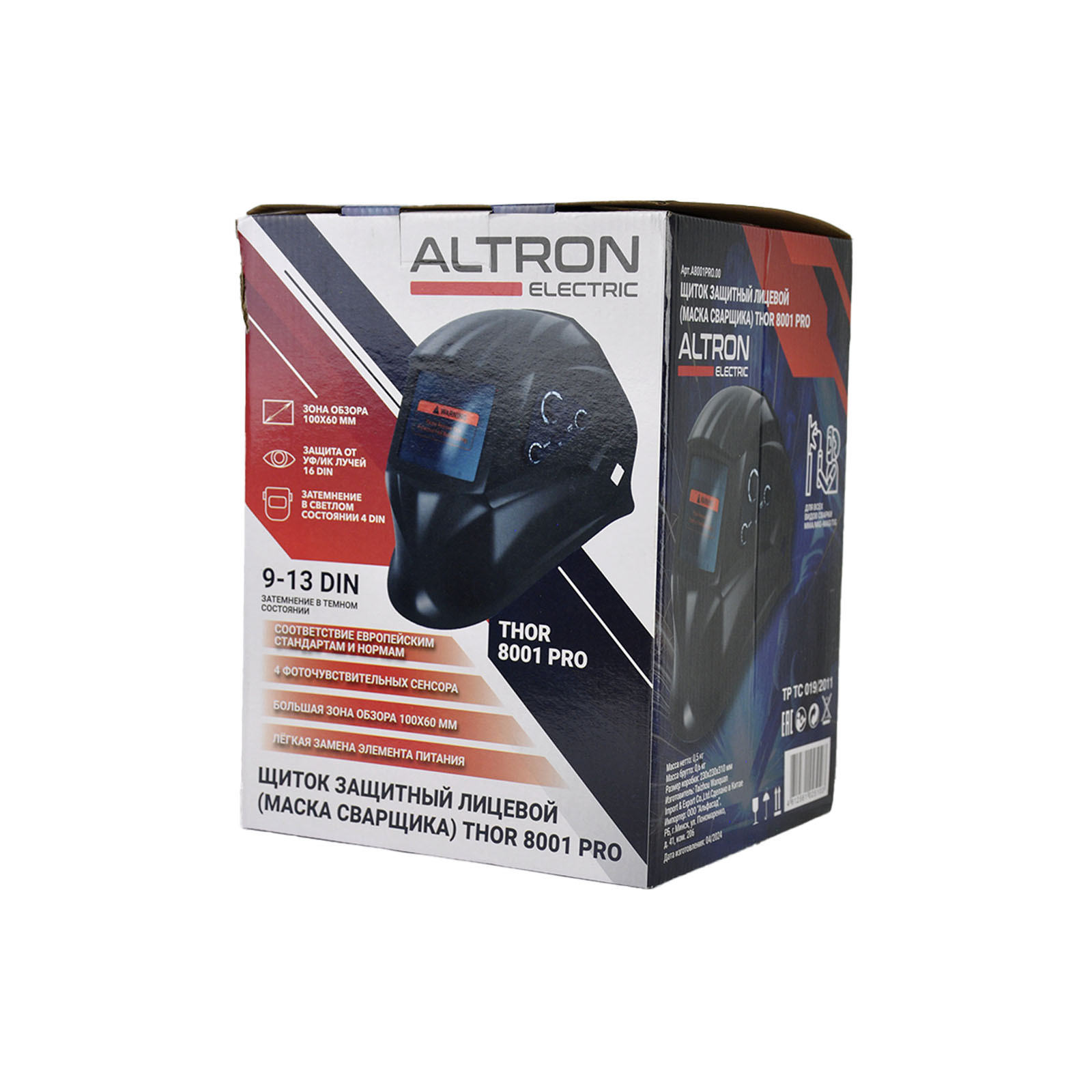 Сварочная маска ALTRON THOR 8001 PRO (4 сенсора; 1/1/1/2; 100х60мм; DIN 4/5-8/9-13)