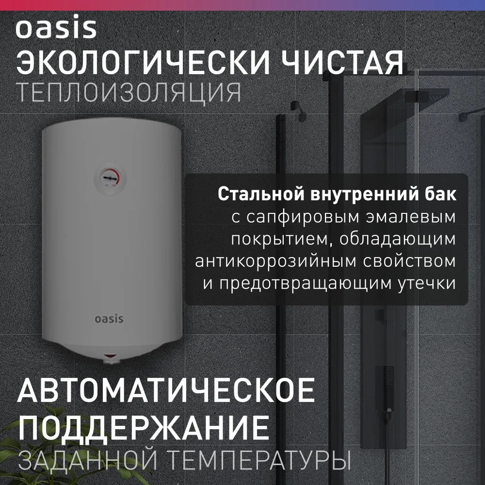 Водонагреватель накопит. Oasis 50А (2кВт, 50л, медный ТЭН, дисплей, верт, УЗО, антизаме