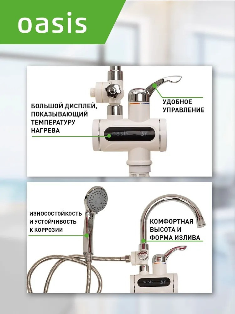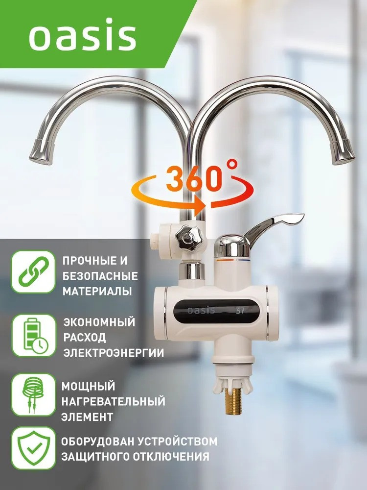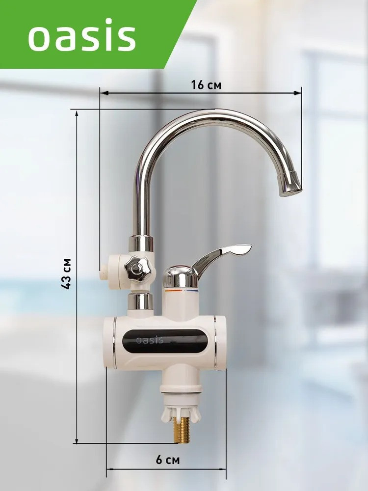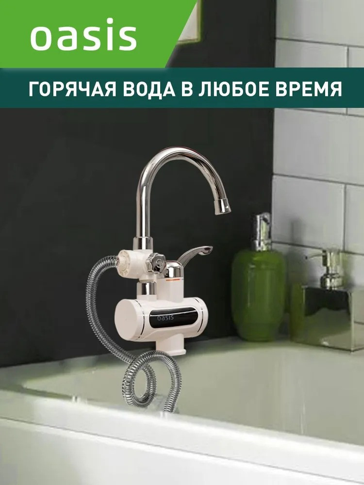 Электрический проточный водонагреватель Oasis EP-3 — это отличное решение при отсутствии централизованной горячей воды. Подобный смеситель-водонагреватель станет отличным приобретением для дачи, квартиры, загородного дома. Он имеет стильный и современный дизайн, практически не отличается от обычного крана и его легко установить самостоятельно.