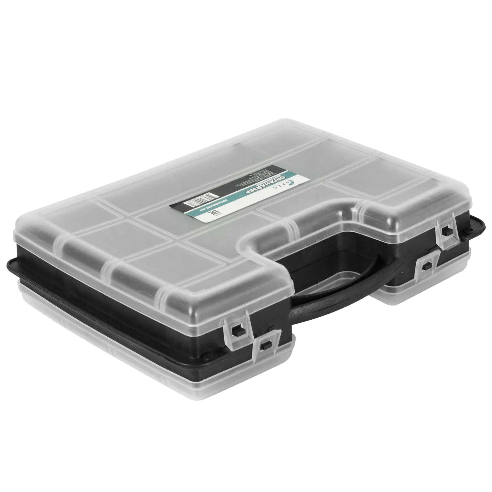 Ящик для крепежа (органайзер) двусторонний SPEC 12" (295х220х76 мм) выполнен в форме кейса, переставные перегородки, на одной стороне 22 отделения, на другой — 10 отделений. Служит для хранения и переноски крепежных и других мелких изделий. В нем удобно размещаются необходимые аксессуары и различные мелочи. Прозрачная крышка позволяет видеть расположение крепежа внутри.